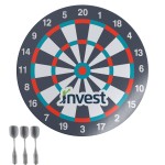 Branded promotional magnetic dartboards, printed in full colour and supplied with a set of three grey darts and velcro fixing.