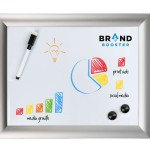 These silver 'snap frame' custom printed dry wipe boards, or wall planners, have the added benefit of a magnetically receptive surface and are perfect for office walls.
