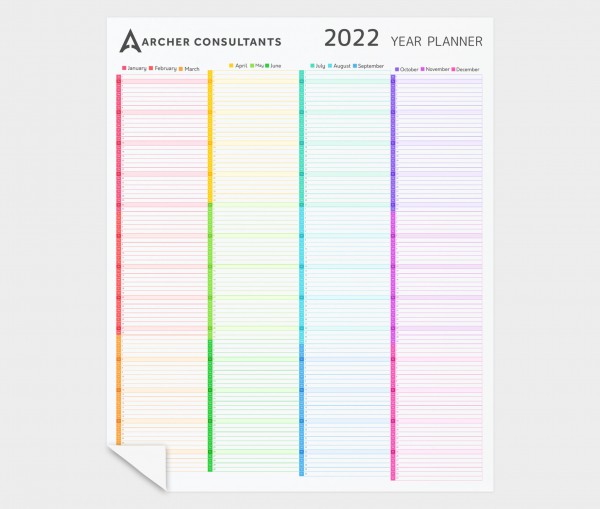Custom printed self adhesive planners. Printed onto Wall-Tac material with a dry erase surface.