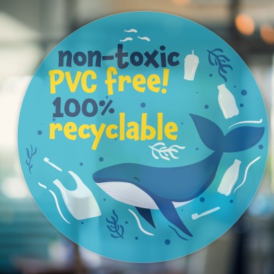 Recyclable 'PET' Window Stickers 100% Recyclable. Non-toxic and Non-PVC! Repositionable and reusable. PET Clear 1370 X 30m 125mic